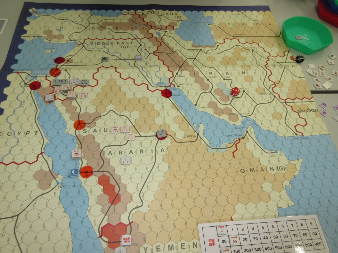 陸上作戦で、先手を取った日本軍は戦線の間隙から3個歩兵師団を突進させ、JERUSALEMを電撃占領します。また、RIYADH東方に別師団が迂回し、こちらも完全に補給路を切断します。