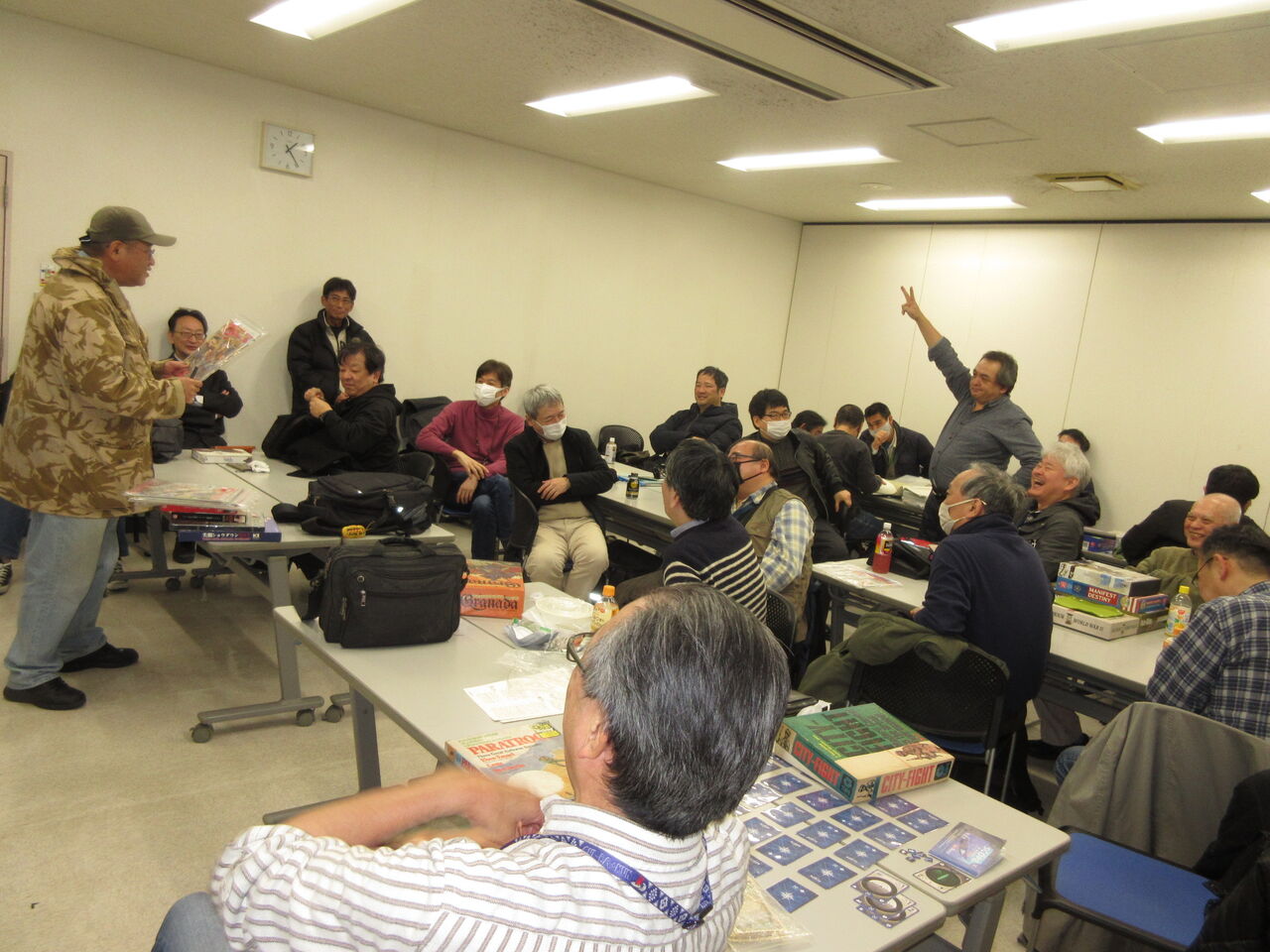 「(珍しく)綺麗なボンバ(?)です」とか、「これは、あまり綺麗なボンバじゃありません(笑い)」とか、「とにかく、持ち帰りたくないので、500円!」とか、各出品者の売り口上も楽しく。挙げ句の果てには「このゲームの価値は、キャラ・サイコロにあります!」「俺がテストプレイしたから、3000円?!」とか、やっぱり、通常のオークションではない、笑いに包まれていました。