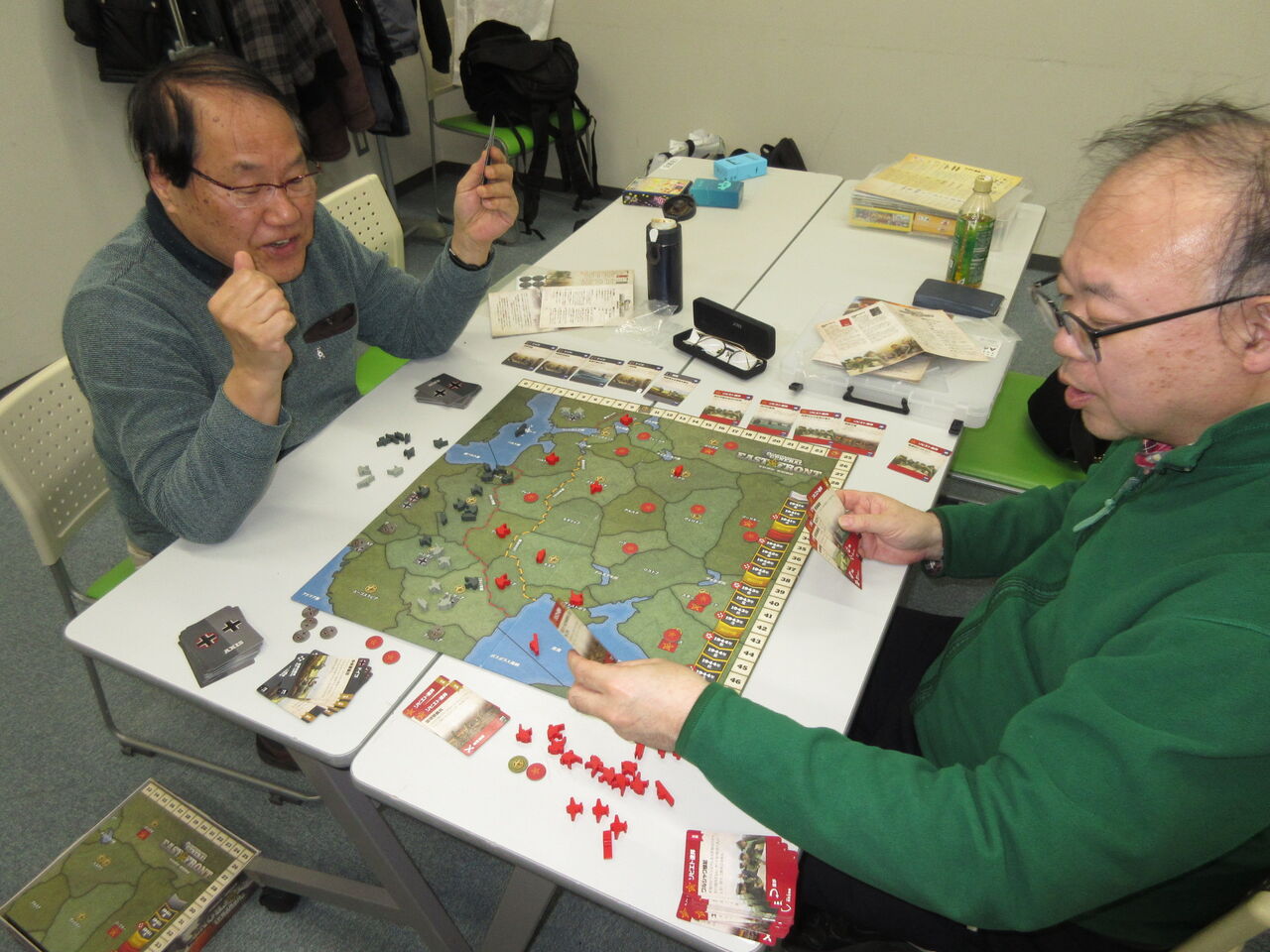 復帰後、猛烈な勢いで練度を上げているラインさんの希望で「バルジ大作戦」(CMJ)です。ドイツ軍(エンジョウ)対連合軍(ライン)で、ともに装甲や機甲師団が包囲し、包囲される大混戦になり。最後は、連合軍(ライン)が寄り切って、前回のリベンジを果たしていました。