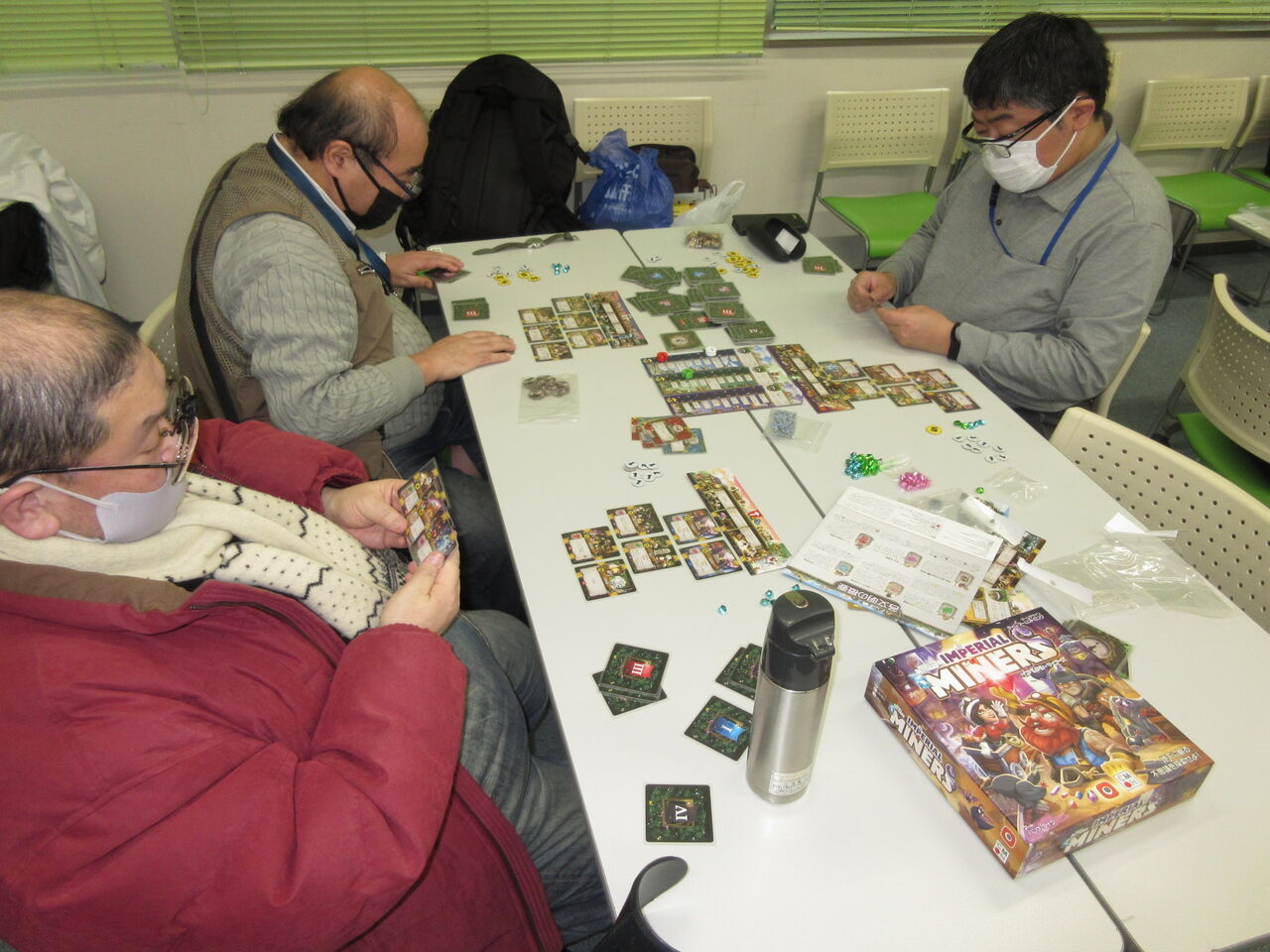 失われた文明の利器が眠る大鉱脈を、掘って掘って掘りまくる「インペリアル・マイナーズ」(CMONJAPAN)。所有者のmoritaさん曰く、「ドナルド・トラ★プのように、掘りまくればいい」(アブナイ!)ゲームだそうで。面子を入れ替えながら、2回戦を行い、ともmoritaさんが勝利に。