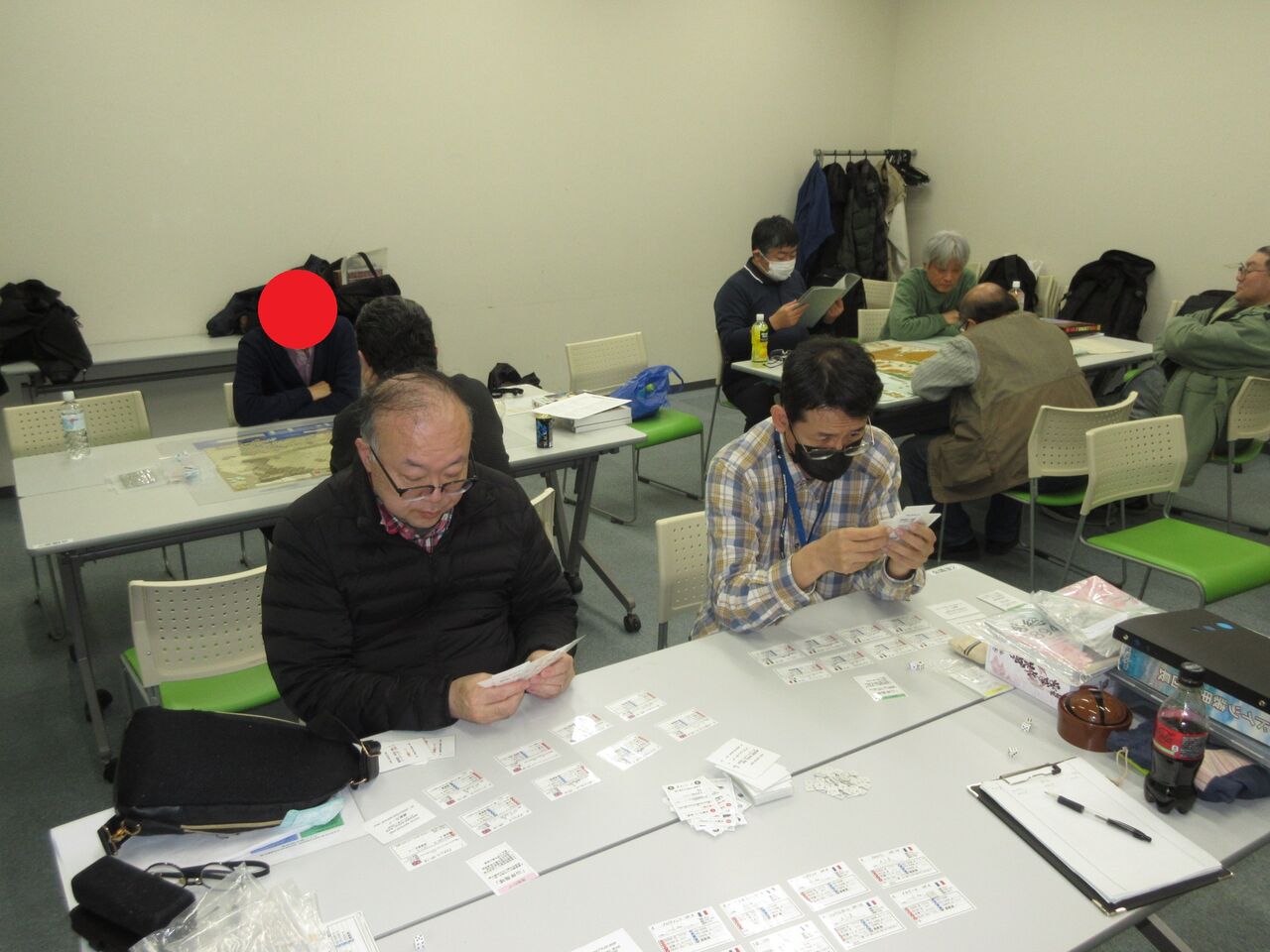 その後、二人は「バルジ大作戦」(CMJ)に。もはや、これで何戦目か?!第4ターンまで進んで、サンビットとバストーニュが包囲されたところで、時間切れに。隣でプレイしていた「ドイツ装甲師団長」(アドテクノス)で、ドイツ軍が半円形の突出部を「まるでバルジですね」と呟いただけで、「バルジ、やってるんですか?!」と、二人揃って、反応するフリークぶり(笑い)。