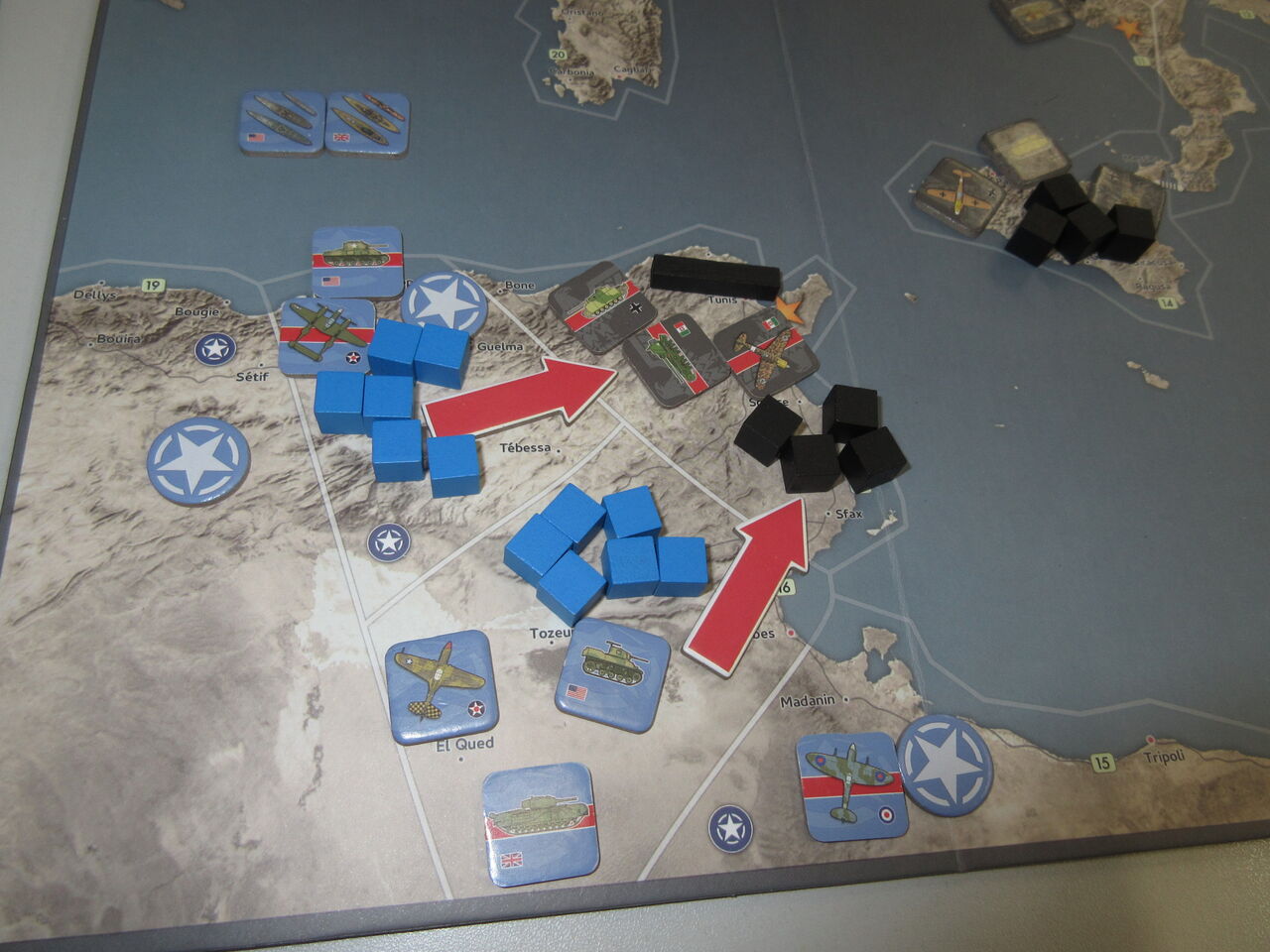 連合軍は、第2行動で全力でTunis(エリア17)を攻撃し、多大な損害を受けながらも、攻略に成功します。