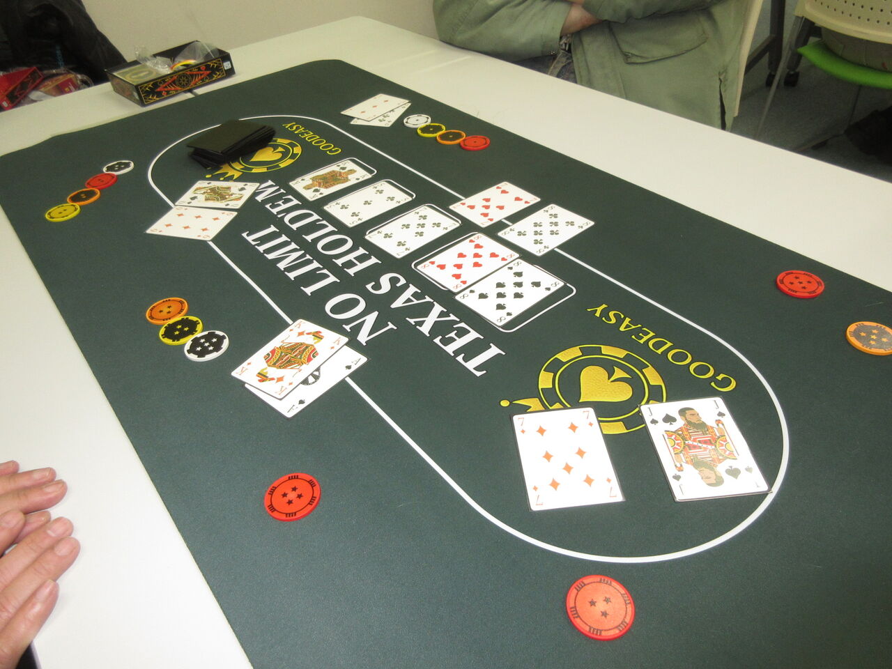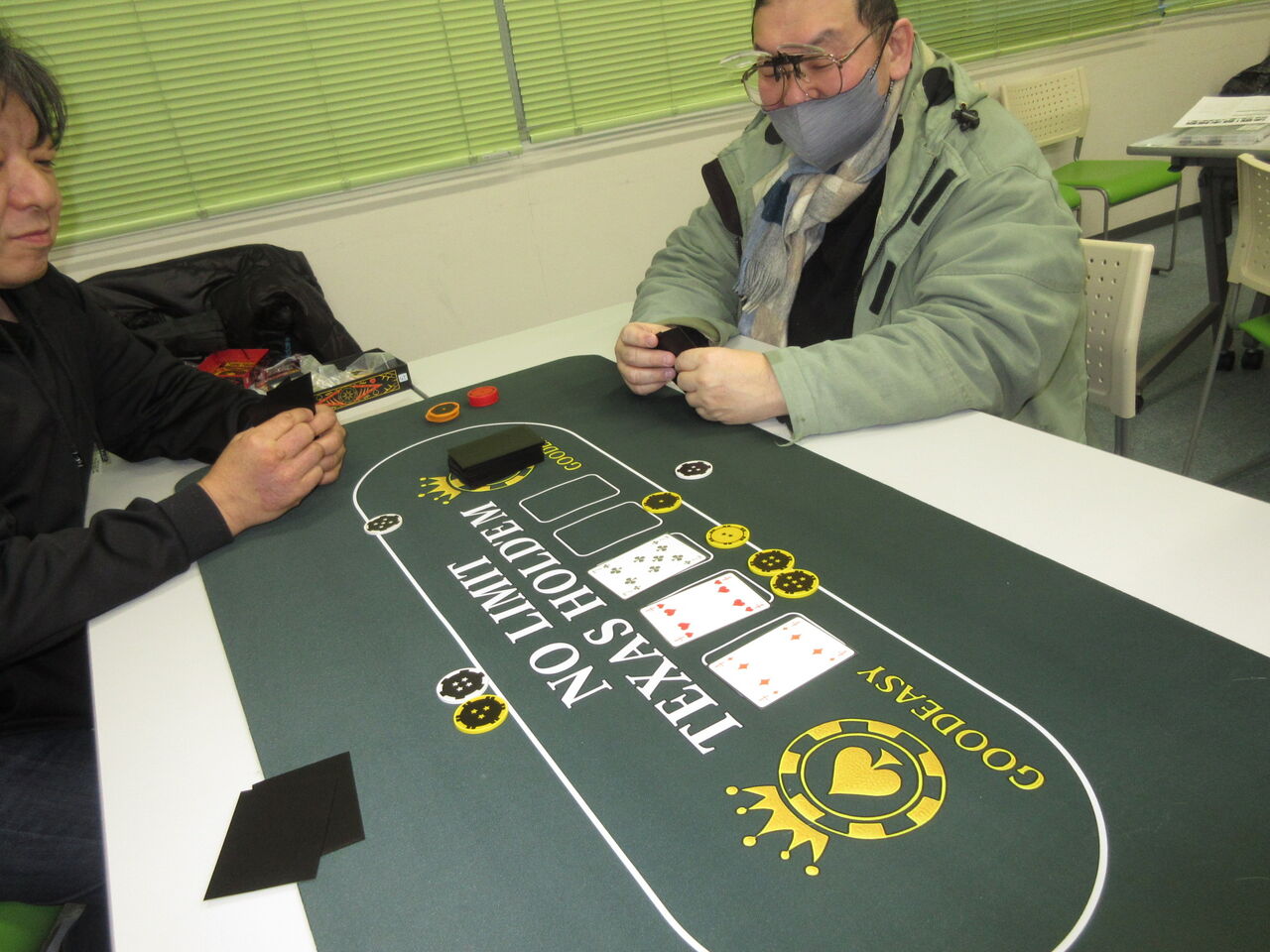 第2戦は、自分にフルハウスが来て、自信を持って1位をとり、役なしの2人もうまく順位が填まって、初勝利に。